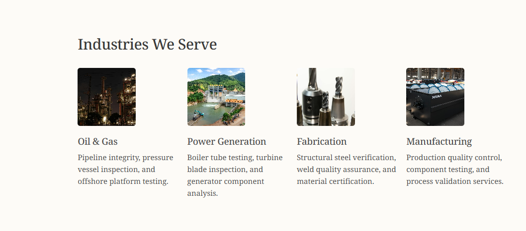 We serve clients in automotive, oil & gas, power plants, sugar mills, and refineries, providing tailored inspection solutions.