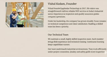 The team at Jagdamba Technology is highly skilled and reliable, ensuring our inspections are thorough and timely.