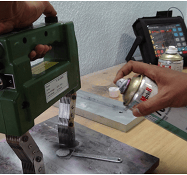Dry or wet magnetic particles are applied to the surface.Inspection & Evaluation